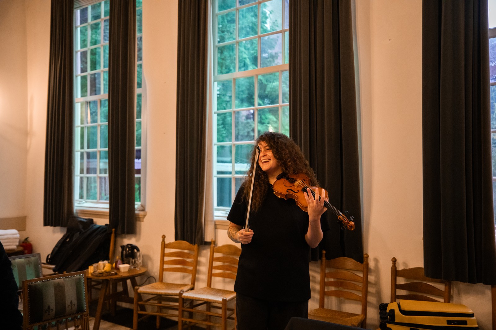 Elle explore tous les sons du violon.