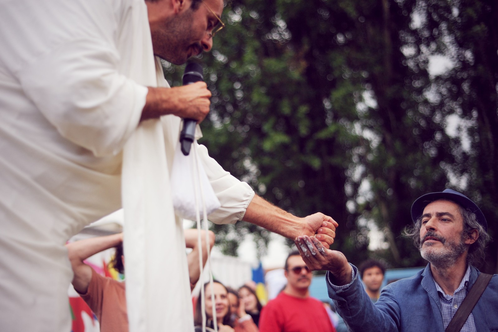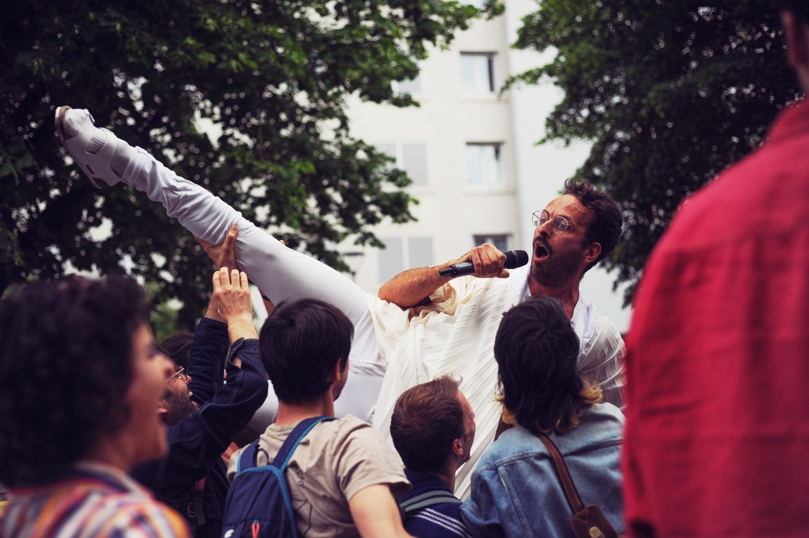 Face à nous se tient un personnage ambigu et mystérieux. Est-ce Dieu en personne qui nous parle ? Ou un homme qui se prend pour Dieu ? Dans une déambulation délirante, il nous invite à réfléchir avec humour et radicalité sur ce que l’humain a fait du monde et sur ce qu’il nous reste à faire. Comme il est un peu mégalo, il nous présente d’abord un numéro de stand-up improvisé, mais après, promis, il va sauver la planète. Flirtant avec la démesure, jouant des codes de l’interaction, des sons mystiques comme de la magie incantatoire, La Création est un spectacle de théâtre de rue éco-spirituel, comique et critique, qui aborde en creux la question de la santé mentale face à la crise climatique.