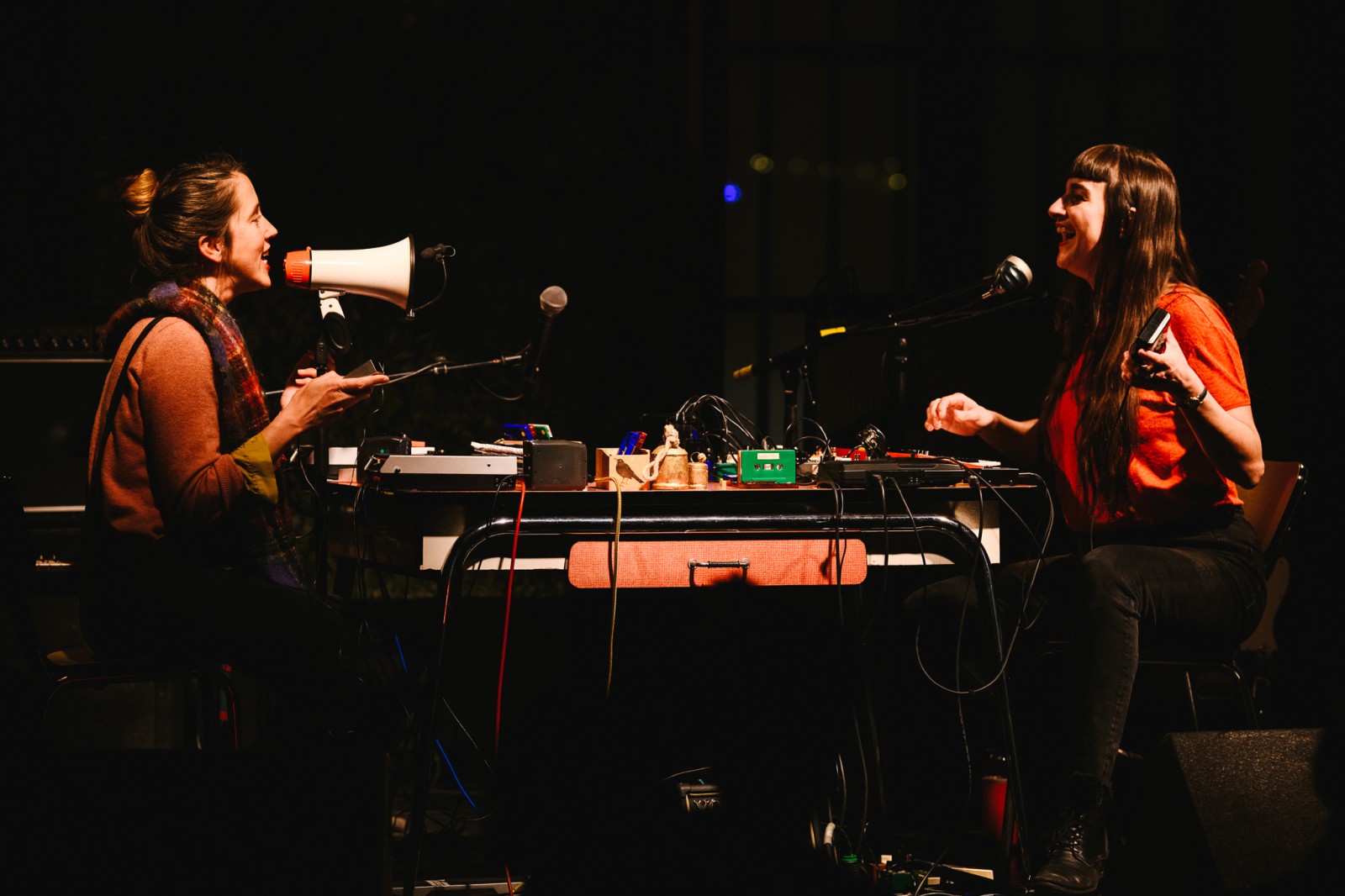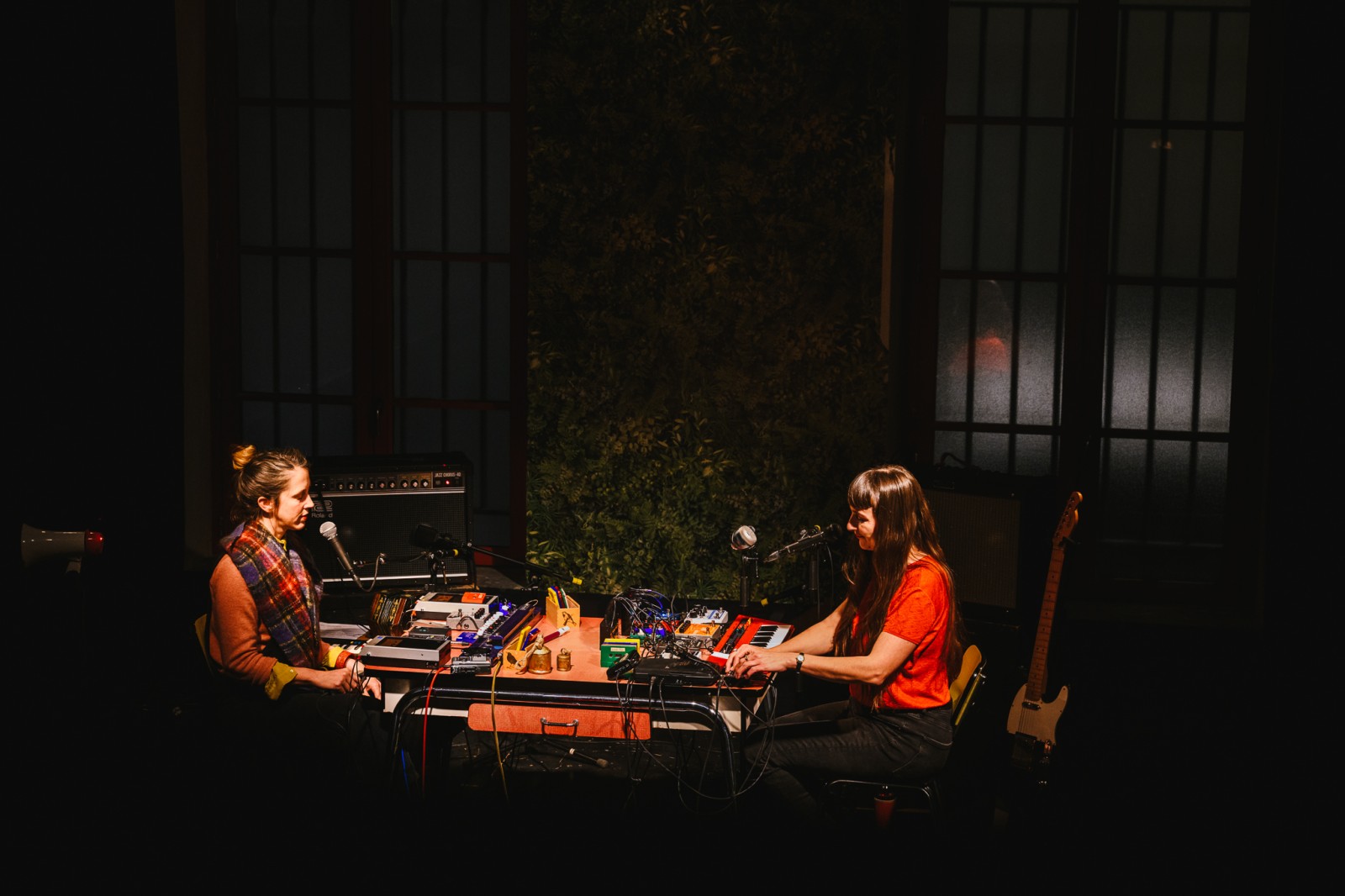 Musiciennes, chanteuses et amies, toutes deux actives dans divers projets séparément, Marion Cousin et Éloïse Decazes se sont réunies dans ce duo avec l’envie commune de faire converger chanson d’auteur·e, musiques traditionnelles et expérimentales. Revisitant le répertoire de Trás-O-Montes, situé au Nord-Est du Portugal, elles dessinent un univers où se mêlent les histoires folkloriques, chantées dans la langue de cette région, et les mélodies apaisantes, euphoriques ou introspectives. Durant leur concert, machines, boîtes à rythme, synthés, guitares et éclats de rires produisent une symphonie de bruits qui viennent accompagner les voix et rendre aux récits racontés toute leur vivacité.